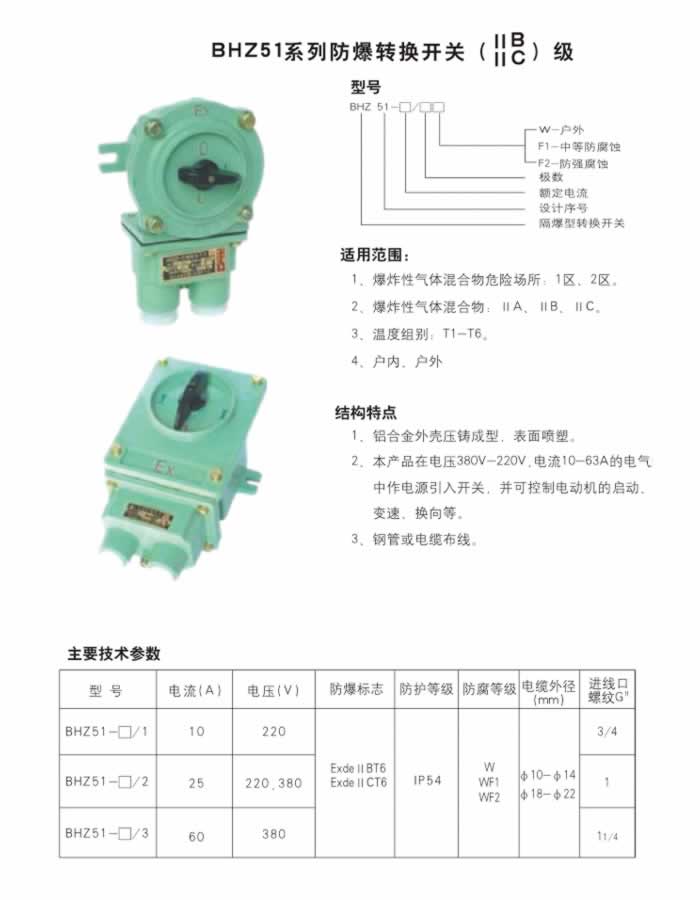 BHZ51系列防爆轉(zhuǎn)換開(kāi)關(guān)(ⅡBⅡC)級(jí)