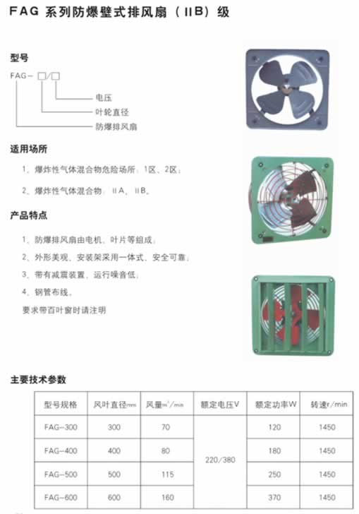FAG系列防爆壁式排風(fēng)扇(ⅡB)級
